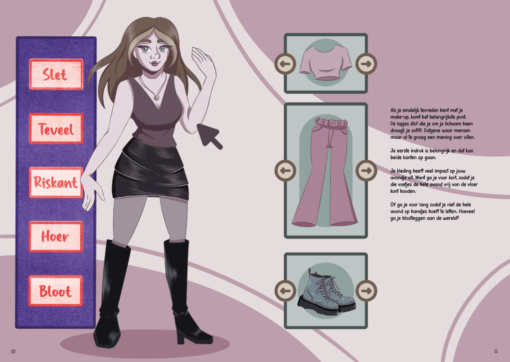 Ik wilde de statement ‘Zij kleedt zich zo, dus ze vraagt erom’ in twijfel trekken. Hiervoor heb ik gekozen om met twee verschillende denkwijzen te gaan werken binnen mijn project.