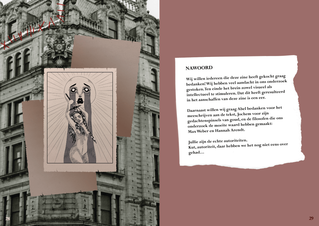 Het hoeft niet zo te zijn dat je in een machtspositie ook per definitie gezag krijgt. We hopen dat de instelling die je hebt dichter bij ‘Eerst zine, dan geloven.’ zal zitten na het lezen van deze zine.